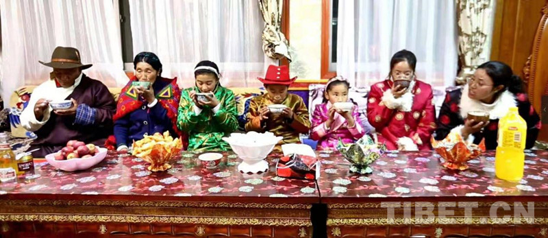 2月10日晚,藏歷新年“古突”夜,在西藏自治區(qū)阿里地區(qū)獅群河鎮(zhèn)康樂新居易地扶貧搬遷點居住的索南旺久一家,換上了節(jié)日的盛裝,準(zhǔn)備好傳統(tǒng)美食“古突”,在自家寬敞明亮的房子內(nèi),共慶傳統(tǒng)佳節(jié)的到來。索南旺久說,因為有黨的好政策,他們一家搬到了寬敞明亮的大房子,現(xiàn)在日子越過越紅火,年味也就更濃了。