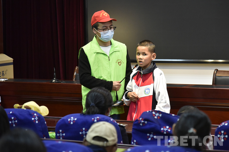 在拉薩市特殊學(xué)校會(huì)議室里,志愿者和特校兒童聊天談心、互動(dòng)游戲,會(huì)議室里不時(shí)傳來陣陣掌聲和歡笑聲。