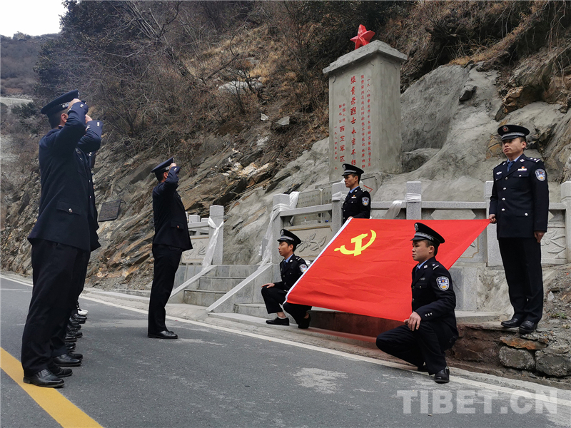 在山南市,西藏山南邊境管理支隊(duì)各級(jí)組織在祖國(guó)雪域邊關(guān)開展祭掃活動(dòng)。斗玉邊境派出所移民管理警察來到位于駐地邊境一線的“將軍崖”,將佇立于此的烈士紀(jì)念碑擦拭干凈,并將鮮花放置碑前,深情緬懷37年前在此巡邊時(shí)因突發(fā)重疾而獻(xiàn)出寶貴生命的原西藏軍區(qū)司令員張貴榮將軍。在紀(jì)念碑前,在黨旗之下,在群山環(huán)抱之中,移民管理警察高舉緊握的右拳,再次重溫入黨誓詞,將革命先烈的戍邊遺志與奉獻(xiàn)精神深銘心間。