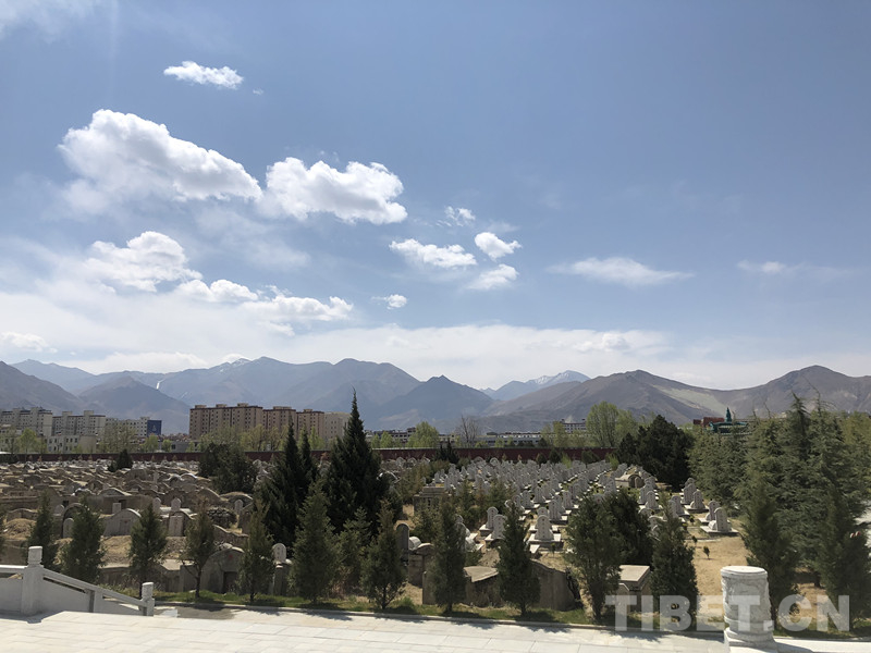 一到陵園,大門口一幅“為有犧牲多壯志、敢教日月?lián)Q新天”的對(duì)聯(lián),也讓我們此次祭奠活動(dòng)突然有了一種特別的精神支撐,我感覺這句話放在西藏這個(gè)地方最合適,但暫時(shí)說不出為什么。我們登記以后,緩步走進(jìn)陵園。整個(gè)陵園正前方一大片寬闊的廣場,題有“革命烈士永垂不朽”漢藏兩種文字的紀(jì)念碑,默默地矗立在廣場中央,碑的左右兩邊各立著一面一人高的國旗和黨旗。花崗石顏色的巨大紀(jì)念碑和肅穆的廣場,映襯著鮮艷的國旗和黨旗,背后是圍繞著墨綠松柏和剛剛發(fā)芽唐柳的烈士墓地,更遠(yuǎn)處是拉薩河谷的壯闊群山和高原湛藍(lán)的天空,風(fēng)從這之間吹過,似乎在訴說著這片土地上發(fā)生的故事和長眠此處烈士們經(jīng)歷過的波瀾壯闊。我們?nèi)〕龌ㄊ凸_(dá),獻(xiàn)至紀(jì)念碑,并肅穆感懷革命烈士的英勇壯烈和無私奉獻(xiàn),最后用三鞠躬表達(dá)我們對(duì)先烈的緬懷和致敬。