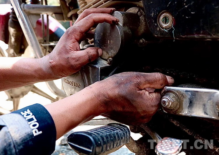 如果你經(jīng)過日喀則邊境管理支隊(duì)陳塘邊境派出所頓樟執(zhí)勤點(diǎn),你有可能會在執(zhí)勤點(diǎn)旁邊的空地上看見一位不停揮舞著扳手,雙手沾滿機(jī)油的民警正圍著摩托車忙碌著。他叫王昱隆,是陳塘邊境派出所的一名民警,年初被分配到頓樟執(zhí)勤點(diǎn),到現(xiàn)在他已經(jīng)義務(wù)幫助不少地過往行人維修摩托車了。