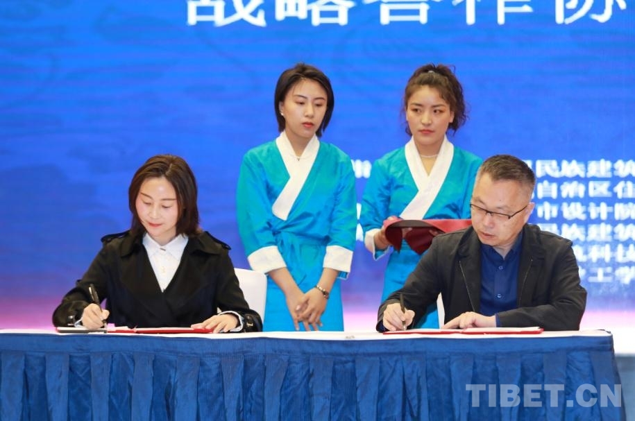 開幕式上,拉薩市設(shè)計院與中國民族建筑研究會、西安建筑科技大學(xué)建筑學(xué)院簽訂戰(zhàn)略合作協(xié)議。中國民族建筑研究會藏建專委會和西安建筑科技大學(xué)大學(xué)生實習(xí)基地也正式落地拉薩市設(shè)計院。