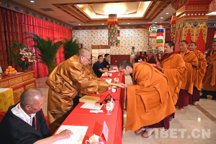 中國(guó)西藏網(wǎng)訊 5月23日,藏傳佛教第十七屆“拓然巴”高級(jí)學(xué)銜授予儀式在北京西黃寺中國(guó)藏語(yǔ)系高級(jí)佛學(xué)院舉行。來(lái)自藏傳佛教覺(jué)囊派、薩迦派、格魯派的33名學(xué)員,經(jīng)過(guò)三年刻苦學(xué)修,通過(guò)嚴(yán)格的課程考核、資格審查、辯經(jīng)考試和論文答辯,獲得藏傳佛教“拓然巴”高級(jí)學(xué)銜。中國(guó)佛教協(xié)會(huì)副會(huì)長(zhǎng)、藏傳佛教學(xué)銜工作指導(dǎo)委員會(huì)主任、中國(guó)藏語(yǔ)系高級(jí)佛學(xué)院院長(zhǎng)嘉木樣活佛頒發(fā)學(xué)銜證書。