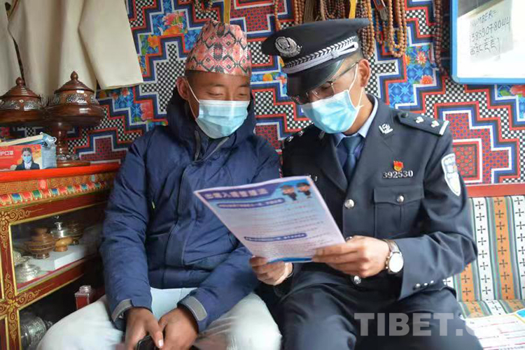 圖為普蘭出入境邊防檢查站民警開展“美好生活·民法典相伴”主題宣傳活動 攝影:格桑倫珠