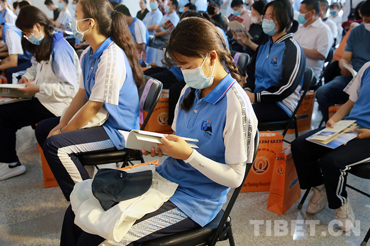 圖為6月29日的開幕式上,來自北京西藏中學(xué)的學(xué)生翻閱展覽資訊 攝影:楊月云