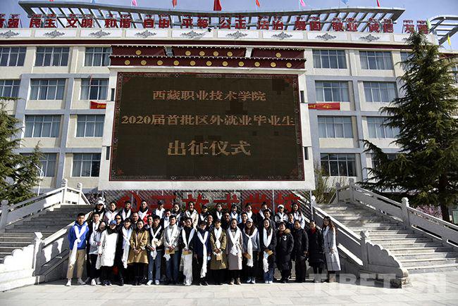 圖為西藏職業(yè)技術(shù)學(xué)院2020屆首批區(qū)外就業(yè)畢業(yè)生出征儀式上,即將啟程的同學(xué)們和老師合影