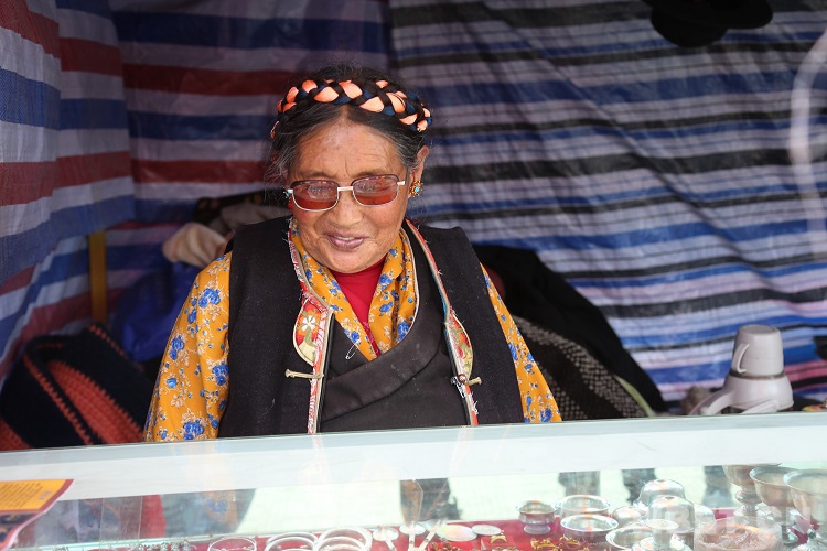已近古稀之年的羅布和央金從1992年起,便年年參加打隆物交會??钍蕉唷⒖诒?,純手工鍛造,再加上30年的堅守。讓他們經(jīng)營民族首飾的攤位成為了打隆物交會的必去“打卡地”之一。