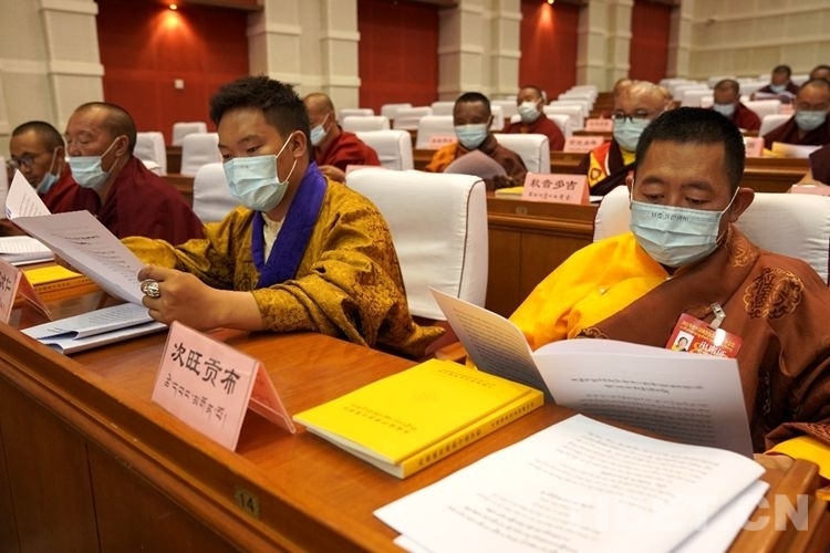 圖為中國佛教協(xié)會(huì)西藏分會(huì)第十一屆理事會(huì)第二次理事會(huì)會(huì)議閉幕會(huì)現(xiàn)場 攝影:王淑