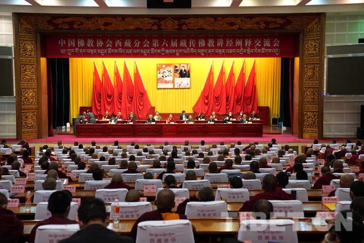 區(qū)黨委常委、統(tǒng)戰(zhàn)部部長,區(qū)政協(xié)黨組副書記、副主席旦科代表西藏自治區(qū)黨委、政府在會(huì)上講話時(shí)說,2016年以來,中國佛教協(xié)會(huì)西藏分會(huì)按照中央的部署和區(qū)黨委的要求,每年都舉辦藏傳佛教講經(jīng)闡釋交流會(huì),對藏傳佛教經(jīng)典和教義教規(guī)作出符合時(shí)代進(jìn)步、社會(huì)發(fā)展、信眾需要的理論闡釋,并面向信眾進(jìn)行宣講,取得了重要成果,產(chǎn)生了廣泛的影響,積累了寶貴經(jīng)驗(yàn),藏傳佛教中國化邁出了實(shí)質(zhì)性步伐。全區(qū)藏傳佛教界代表人士自覺以習(xí)近平新時(shí)代中國特色社會(huì)主義思想和社會(huì)主義核心價(jià)值觀為引領(lǐng),弘揚(yáng)中華優(yōu)秀傳統(tǒng)文化,對藏傳佛教教義教規(guī)作出時(shí)代化、大眾化的新闡釋,展示了深厚的宗教造詣、愛黨愛國愛人民領(lǐng)袖的真摯情懷和走中國特色社會(huì)主義道路的堅(jiān)定決心。