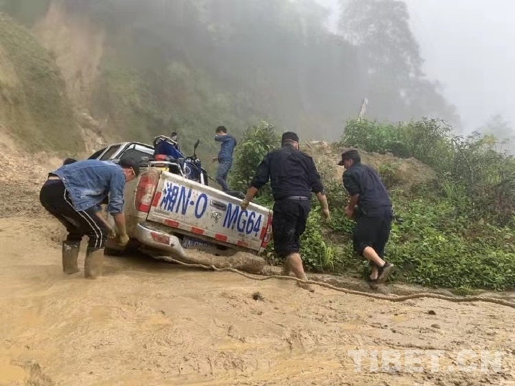 “當(dāng)天上午我與家人正打算回家,誰知雨越下越大,不時還有泥石流,為躲避滾落下來的碎石,一不注意車輪打滑,導(dǎo)致車輛陷入泥土中,越陷越深,我們害怕地跳下了車就報警?!标愊壬窃撥嚨能囍?,回憶起事情經(jīng)過他還心有余悸,“所幸有移民管理警察,當(dāng)我們看到他們的身影出現(xiàn),就知道有救了。他們很給力,與當(dāng)?shù)刳s來幫忙的群眾一起解救了我們,真的非常感謝他們!”(中國西藏網(wǎng) 通訊員/孫月 姜凱峰 記者/王佳豪 圖片由背崩邊境派出所提供)