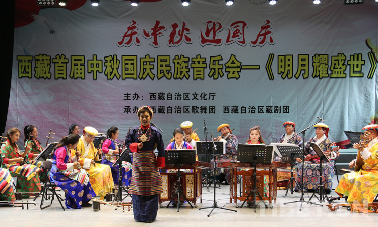 中國西藏網(wǎng)訊 器樂齊奏、堆諧奔放、歌曲悠揚(yáng)……9月25日晚,一臺以“享民樂美、敘佳節(jié)情”為主題的民族音樂會——《明月耀盛世》在西藏自治區(qū)藏劇團(tuán)上演。作為西藏自治區(qū)首屆中秋國慶民族音樂會,音樂會營造了濃厚喜慶的節(jié)日氛圍。