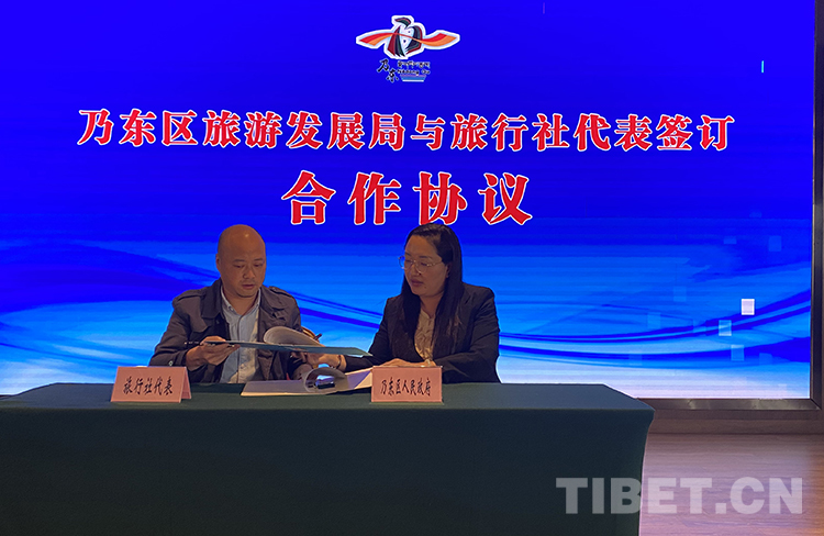 圖為山南市乃東區(qū)政府與重點(diǎn)旅行社交流座談會(huì)現(xiàn)場(chǎng)簽約儀式 攝影:王媛媛