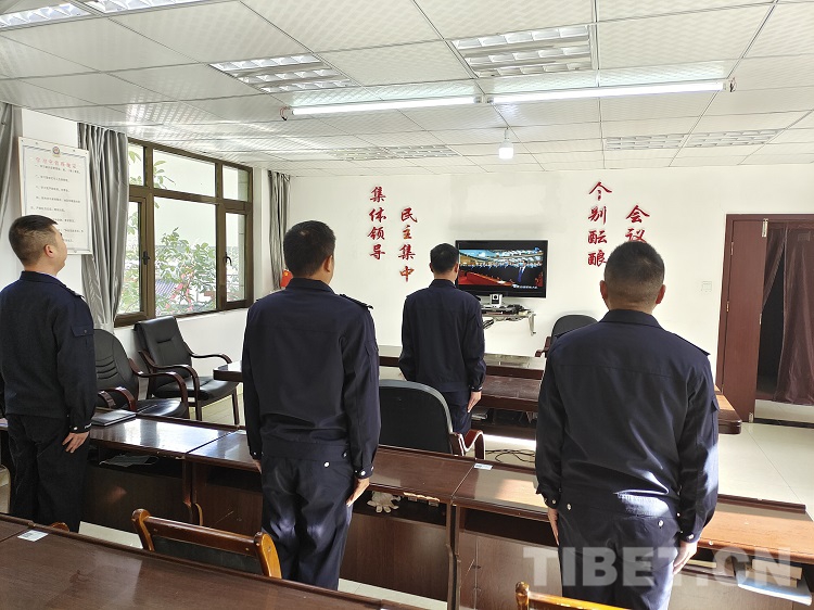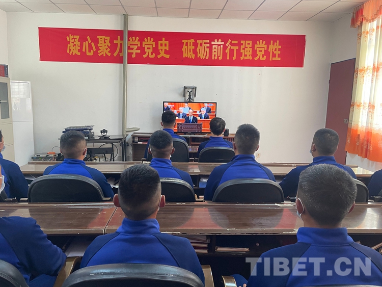圖為林芝邊境管理支隊機關(guān)民警觀看紀念辛亥革命110周年大會直播 攝影:劉安震鏞