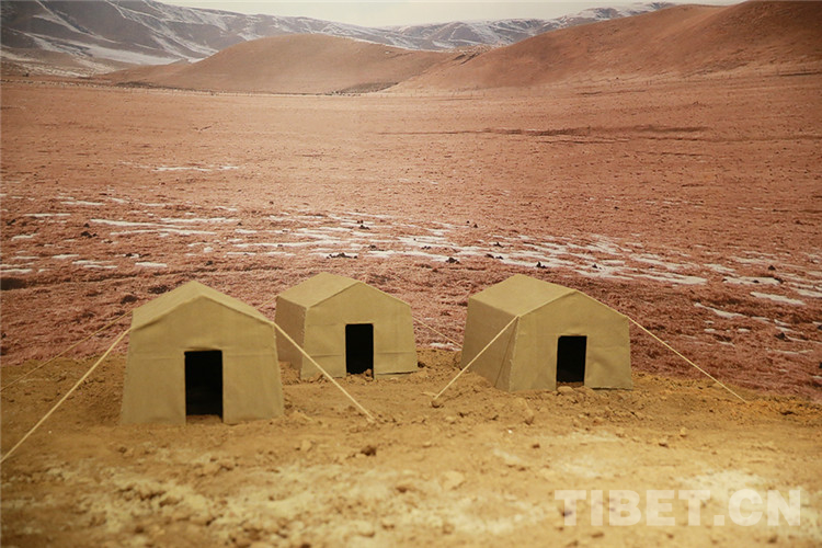 展廳內(nèi)三頂帳篷的模型,模擬了當(dāng)年金銀灘草原上的場景。