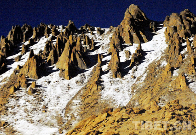 圖為文部辦事處(現(xiàn)尼瑪縣)被當(dāng)?shù)啬撩袢罕姺Q為“一百個騎兵”的石林山(唐召明1987年攝)
