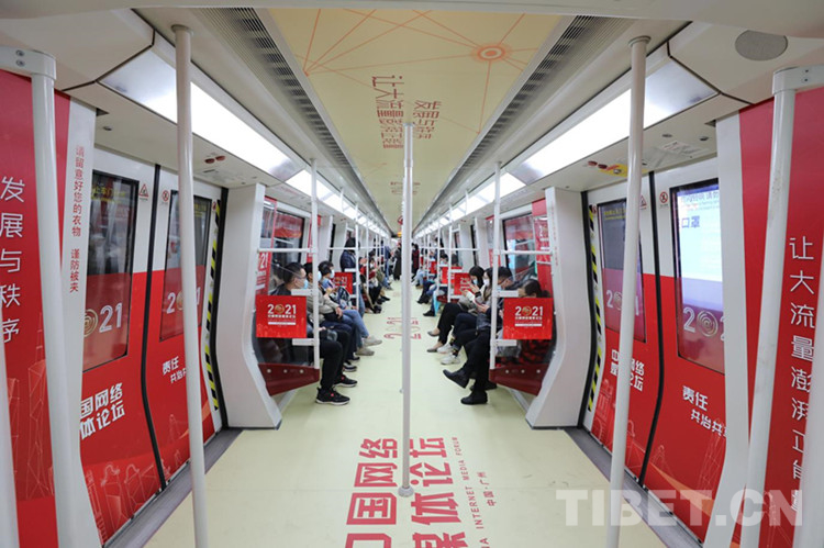 中國西藏網(wǎng)訊 2021中國網(wǎng)絡媒體論壇將于11月24日至25日在廣州舉辦。論壇召開前夕,廣州地鐵在八號線推出了論壇主題列車。該主題列車以慶祝建黨100周年貫穿全年的紅色為主基調,將本屆論壇5個平行論壇的主題“傳播:塑造價值”“創(chuàng)新:技術賦能”“發(fā)展:行穩(wěn)致遠”“責任:共治共享”以及“大灣區(qū):一網(wǎng)相聯(lián)”融入車廂設計。主題列車將上線運營一個月,感興趣的乘客可前往乘坐參觀。