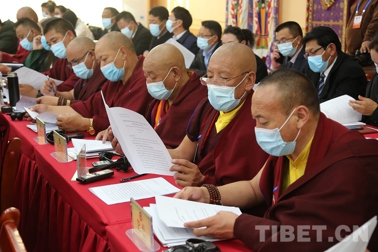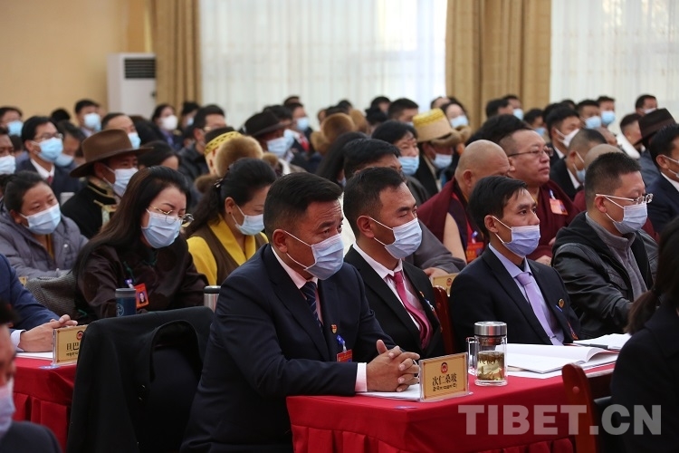 圖為政協(xié)委員聽取政協(xié)第十一屆拉薩市委員會(huì)常務(wù)委員會(huì)向大會(huì)所作的工作報(bào)告 攝影:王佳豪
