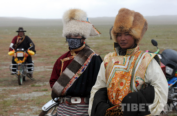 這是兩位青年牧民著盛裝參加雙湖縣的“撤區(qū)建縣”慶祝活動(唐召明2013年7月26日攝)