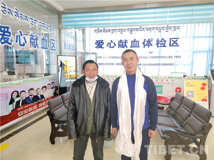 圖為那曲市森林消防大隊消防員張玉熙(右一)為那曲市人民醫(yī)院一名病人捐獻急需的B型血血小板