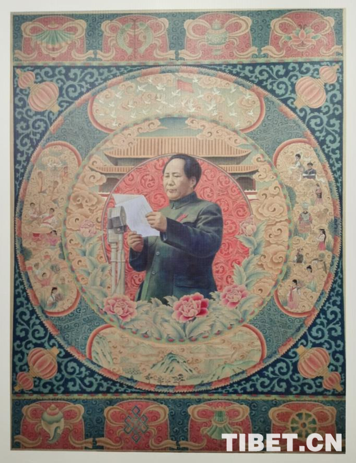 圖為唐卡作品《毛主席》作者:強(qiáng)巴 翻拍:王淑