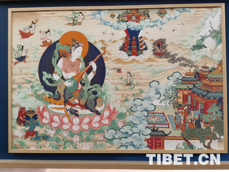 唐卡作為藏民族文化中一種獨(dú)具特色的繪畫藝術(shù)形式,題材內(nèi)容涉及諸多領(lǐng)域的藏族“百科全書”,是中華民族民間藝術(shù)中彌足珍貴的非物質(zhì)文化遺產(chǎn)。此次展出的新唐卡,以輕靈的姿態(tài)融入社會、融入市民生活,把內(nèi)在和善吉祥之美奉獻(xiàn)給觀眾,這種新表達(dá),讓人耳目一新。