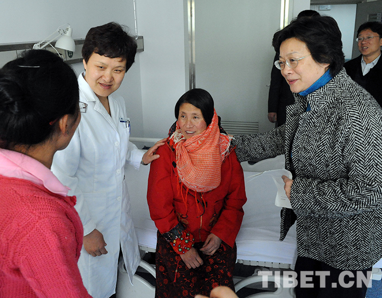 這是時任全國婦聯(lián)副主席甄硯(右一)受時任十一屆全國人大常委會副委員長陳至立委托,到北京口腔醫(yī)院看望斯求卓瑪,并送來慰問金(唐召明2010年4月14日攝)