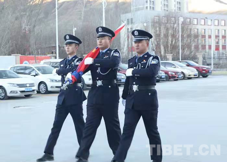 警旗飄揚耀警心。升警旗儀式上,禮兵組成的護旗方隊邁著整齊劃一的步伐護送警旗走上旗臺,全體民警整裝列隊,警容嚴整、精神振奮,在雄壯的警歌聲中,莊嚴敬禮,以飽滿的熱情、昂揚的精神、堅定的目光注視著警旗冉冉升起,迎風飄揚。