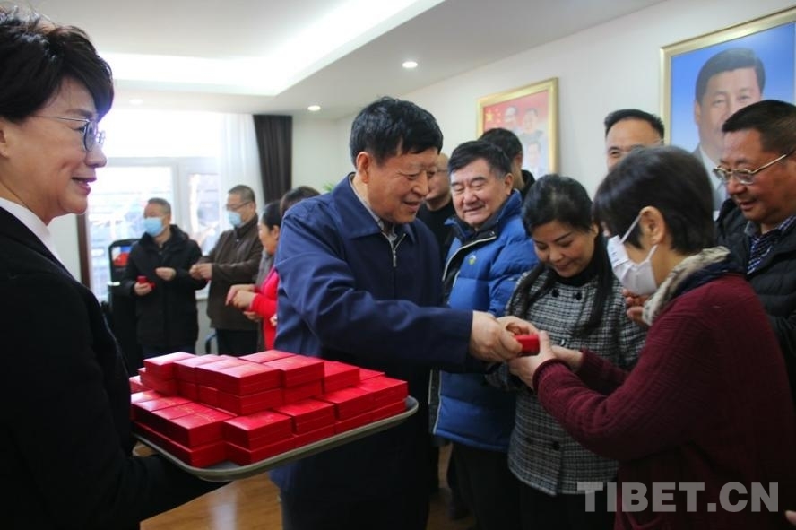 圖為協(xié)會為各分部頒發(fā)西藏和平解放70周年紀念章 攝影:王茜