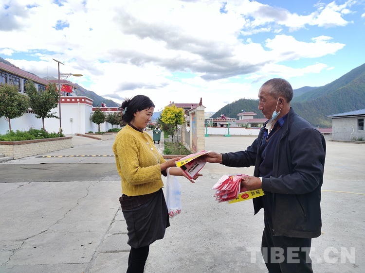 在中國共產(chǎn)黨成立100周年之際,公覺旦巴拿著自己買的國旗在村口開始“蹲點”,當有村民經(jīng)過村口時,他便上前發(fā)放新的國旗,督促大家:“中國共產(chǎn)黨成立100年即將到來,趕緊把家里的舊國旗換了,以嶄新的面貌迎接‘七一’,要知道,我們現(xiàn)在的美好生活都是黨給的!”村民們總是雙手接過國旗,一邊道謝,一邊微笑著點頭表示認同。