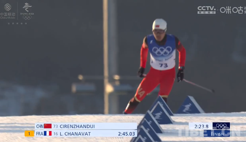 男子個(gè)人短距離(自由技術(shù))資格賽共有90位運(yùn)動員參加,前30名晉級1/4決賽。首次參加冬奧會的次仁占堆出發(fā)技術(shù)不錯,他在前0.6公里計(jì)時(shí)點(diǎn)滑出了1分23秒2的成績,接下來,次仁占堆控制住節(jié)奏,獲得第60名。