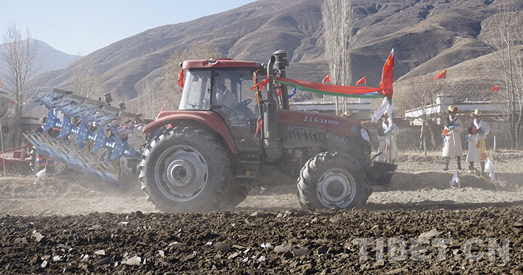 迎著初升的太陽,記者從拉薩市區(qū)出發(fā)前往雅魯藏布江北岸的山南市扎囊縣扎其鄉(xiāng)孟卡榮村春耕現(xiàn)場。寓意豐收的切瑪盒、紅色穗子裝扮的牦牛、彩色布條裝飾的耕整機(jī)……置身其中,熱鬧非凡。