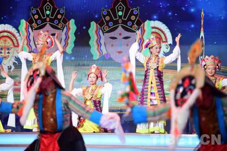 圖為首映式現(xiàn)場的西藏傳統(tǒng)歌舞演出