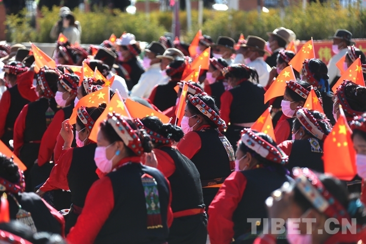 上午10時(shí)30分,伴隨著歌舞《歌頌幸?!?,慶祝西藏百萬(wàn)農(nóng)奴解放63周年專場(chǎng)文藝演出拉開(kāi)帷幕?!睹飨扇藖?lái)》《逛新城》《翻身農(nóng)奴把歌唱》《新舊對(duì)比》等節(jié)目在現(xiàn)場(chǎng)掀起一個(gè)又一個(gè)高潮。舞臺(tái)下,滿是身著盛裝的各族群眾,不斷揮舞著手中的五星紅旗,臉上綻放著感動(dòng)和幸福的笑容。