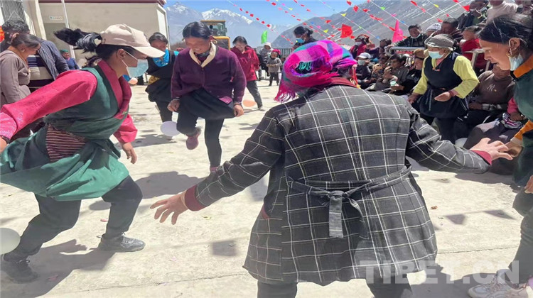 一大早,村民們匯聚在村委會(huì),將一面鮮艷的五星紅旗冉冉升起,國(guó)歌在山谷中回蕩。村委會(huì)第一書(shū)記次仁扎西召集大家進(jìn)行了新舊對(duì)比,憶苦思甜,感恩黨的關(guān)懷、感恩國(guó)家支持。宣講員白瑪卓嘎主講團(tuán)結(jié)的益處,引導(dǎo)鄰里鄉(xiāng)親團(tuán)結(jié)和睦,自覺(jué)守護(hù)中華民族大團(tuán)結(jié)。在陣陣歡呼與掌聲中,汝村文藝演出隊(duì)跳起具有本村特色的鍋莊舞,84歲的曲珍老阿媽唱響《北京的金山上》。有著26年黨齡的老黨員德吉大姐用一曲《再唱山歌給黨聽(tīng)》表達(dá)不忘黨恩,永遠(yuǎn)跟黨走的決心。