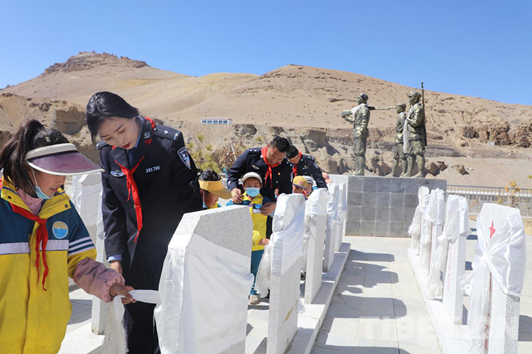 中國(guó)西藏網(wǎng)訊 青松翠柏守英烈,春風(fēng)百花寄哀思。在清明節(jié)來(lái)臨之際,為傳承英烈遺志,弘揚(yáng)英烈精神,4月2日,西藏普蘭出入境邊防檢查站民警與普蘭縣九年一貫制學(xué)校少先隊(duì)員們一起來(lái)到普蘭縣烈士陵園開(kāi)展“清明祭英烈”活動(dòng)。