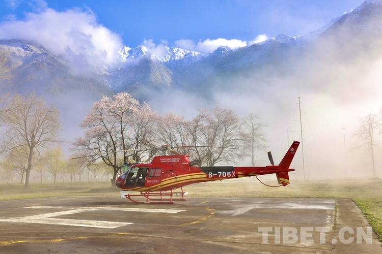 中國西藏網(wǎng)訊 云遮霧繞的早晨,青山如黛,桃花正盛。國網(wǎng)通航公司SG1151直升機(jī)機(jī)組的王磊卻沒時間欣賞這如畫的美景,一早便和同事們準(zhǔn)備今天的航巡作業(yè)。