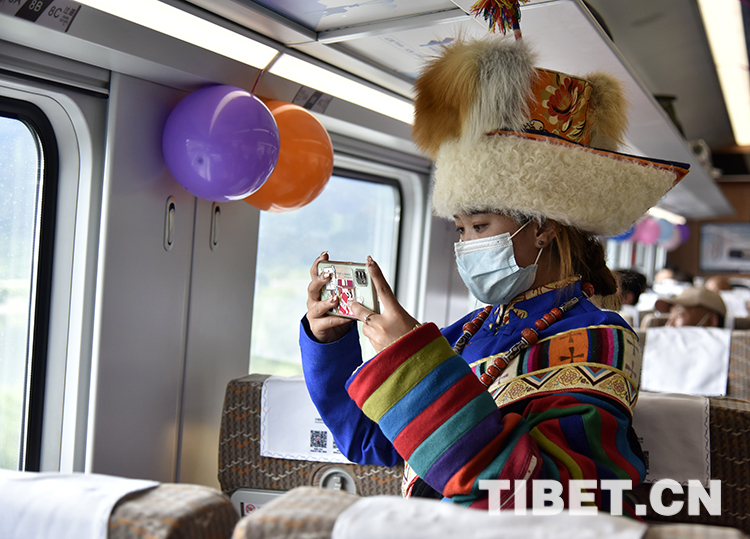 與斯朗旺扎的特別安排不同,游客胡菊萍和章猛飛是恰巧趕上了。一行人于6月23日抵達(dá)拉薩,在游覽了山南市的昌珠寺、雍布拉康等景點(diǎn)后,準(zhǔn)備從山南搭乘火車前往林芝繼續(xù)游玩。胡菊萍告訴記者,2007年,她也曾搭乘火車從西寧到拉薩旅游?!澳菚r(shí)候,翻唐古拉山,身體特別不舒服。今天乘坐復(fù)興號(hào),感覺特別好。過(guò)隧道時(shí),一點(diǎn)都沒有耳鳴的反應(yīng),手機(jī)也有信號(hào)?!焙掌即蛩愣嗯囊稽c(diǎn)車窗外的景色,留存回憶的同時(shí)也要分享給家里人。