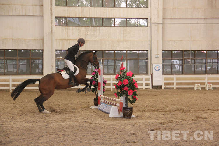 圖為7月16日競技馬術(shù)項目三項賽(場地障礙)比賽現(xiàn)場 攝影:德吉卓嘎