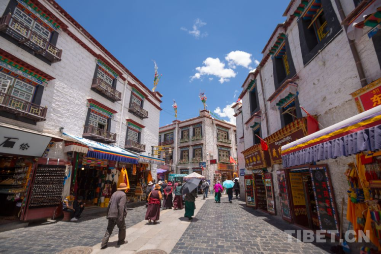 這里是拉薩古城中心,是拉薩經(jīng)濟(jì)、文化、民族手工藝和風(fēng)土人情的集合地,自古便吸引了大量外地商人來此謀生。千百年間借助繁忙的商貿(mào)往來,各民族之間實(shí)現(xiàn)深入交往、交流、交融。如今,“老字號(hào)”藏裝店、藏餐館、茶館,與特色文創(chuàng)商店、具有西藏特色的新式茶飲連接起八廓街的傳統(tǒng)與現(xiàn)代,延續(xù)千年八廓街的繁榮。