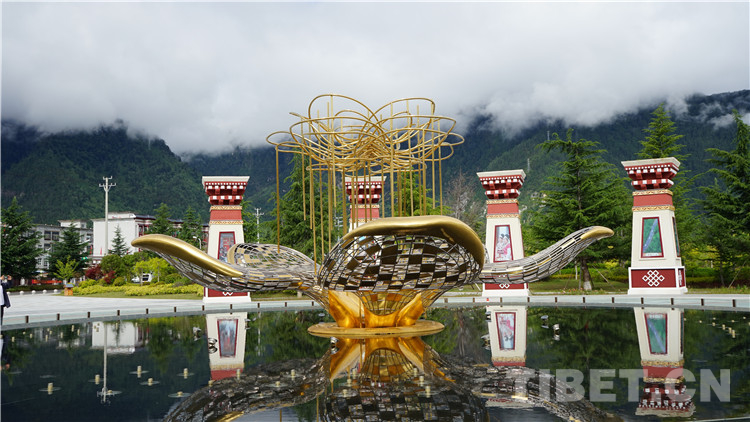 圖為林芝市工布公園“萬(wàn)樹(shù)桃花”雕像 攝影:旦曲