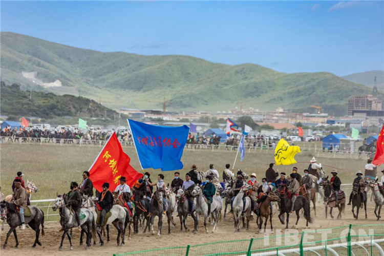 中國(guó)西藏網(wǎng)訊 “乘馬跳鞍”“海底撈月”“跑馬拾哈達(dá)”……7月28日,由四川省阿壩藏族羌族自治州紅原縣委、縣政府主辦的紅原大草原雅克賽馬季開(kāi)幕。精彩的開(kāi)幕式演出讓在場(chǎng)的觀眾大飽眼?!,F(xiàn)場(chǎng)不時(shí)爆發(fā)出熱烈的掌聲和此起彼伏的歡呼聲。