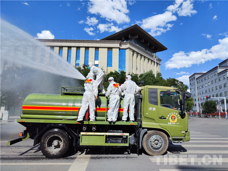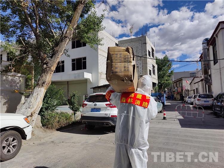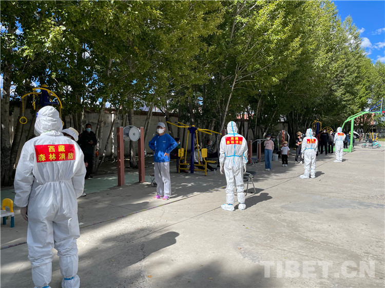 拉薩市森林消防特勤大隊出動135名救援隊員,在拉薩市城關(guān)區(qū)加榮社區(qū)、塔瑪社區(qū)、藏?zé)嵘鐓^(qū)、納如社區(qū)等9個地點開展核酸檢測秩序維護(hù)、防疫物資搬運和防疫消殺等工作。