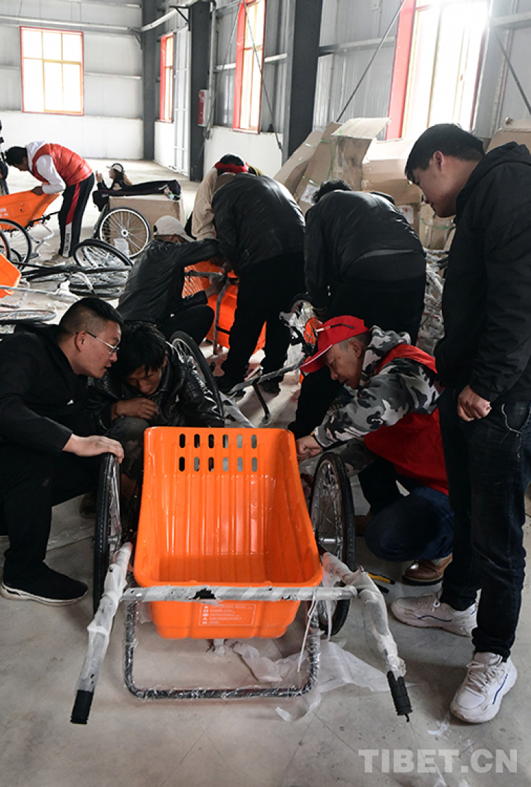 這是北京建藏援藏工作者協(xié)會(huì)志愿組服務(wù)人員在巴青縣指導(dǎo)牧民群眾安裝高原撿拾車(唐召明2021年9月14日攝)