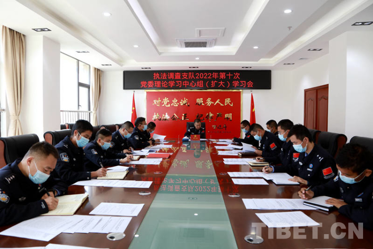 中國西藏網(wǎng)訊 近日,西藏邊檢總站執(zhí)法調(diào)查支隊掀起學(xué)習(xí)宣傳貫徹黨的二十大精神熱潮,西藏邊檢總站執(zhí)法調(diào)查支隊黨委號召支隊各級各部門和全體黨員民警立足自身職能職責(zé)和工作崗位,把學(xué)習(xí)好、宣傳好、貫徹好黨的二十大精神作為當(dāng)前和今后一個時期的首要政治任務(wù),全力保障支隊各項工作部署落地生根、開花結(jié)果,以實際行動學(xué)習(xí)宣傳貫徹好黨的二十大精神。(中國西藏網(wǎng) 記者/賈華加)圖為西藏邊檢總站執(zhí)法調(diào)查支隊召開學(xué)習(xí)宣傳貫徹黨的二十大精神動員部署會 攝影:劉明陽