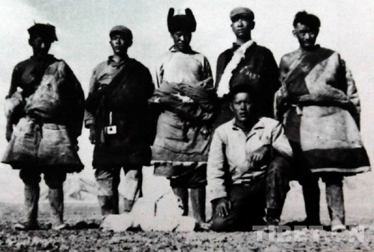 他們馬不停蹄地向色務(wù)庫加會合地點(diǎn)挺進(jìn),8月16日到達(dá)預(yù)定地點(diǎn)。第二天,沒有見到其他考察工作組來會合,他們開始在周圍尋找。第三天,洛桑丹珍看到一二公里外似乎有個(gè)人影在晃動,便警惕地躲在一塊巖石后觀察。當(dāng)洛桑丹珍認(rèn)出來者是尼彭,便迎上前去,而尼彭都快走到洛桑丹珍眼前了也沒認(rèn)出他來。因?yàn)樗囊路缫哑茽€不堪,臉被曬得像塊黑炭。直到洛桑丹珍大聲喊著他的名字,尼彭方才醒悟過來,驚訝地叫著,“唉呀呀,你都成了無人區(qū)的野人了!”
