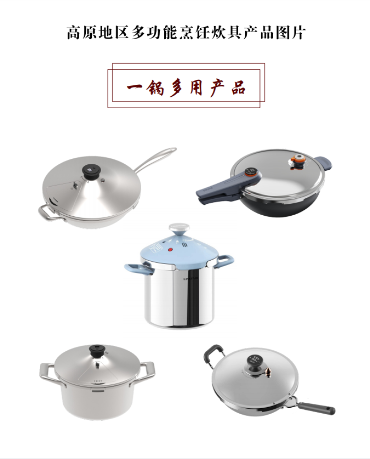 西藏自治區(qū)海拔跨度大,人民群眾生活范圍主要在800米至5000米左右,針對(duì)不同海拔高度需要不同烹飪壓力及不同烹飪時(shí)間的需求,研發(fā)的高原地區(qū)多功能烹飪炊具可實(shí)現(xiàn)一鍵調(diào)壓、多檔控壓和感溫定時(shí)功能。新研發(fā)的壓力鍋針對(duì)不同的海拔地區(qū)可以實(shí)現(xiàn)不同的壓力控制,從而在不同的沸點(diǎn)均能快速煮熟食物,實(shí)現(xiàn)與區(qū)外煮熟時(shí)間相同,且兼具口感,并保留食物更多的營(yíng)養(yǎng)成分。新研發(fā)的高原地區(qū)專用燒水壺(明火款、電子款)也實(shí)現(xiàn)了在不同海拔地區(qū)均能與區(qū)外相同時(shí)間使壺內(nèi)水沸騰后達(dá)到100℃,從而保障高原地區(qū)廣大群眾都能喝上燒開(kāi)的水。