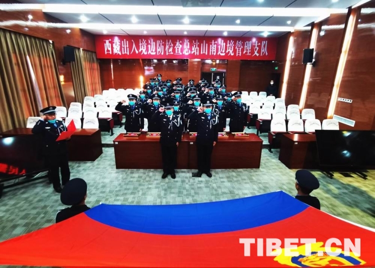圖為山南邊境管理支隊全體民警重溫入警誓詞 鄭琦山 攝