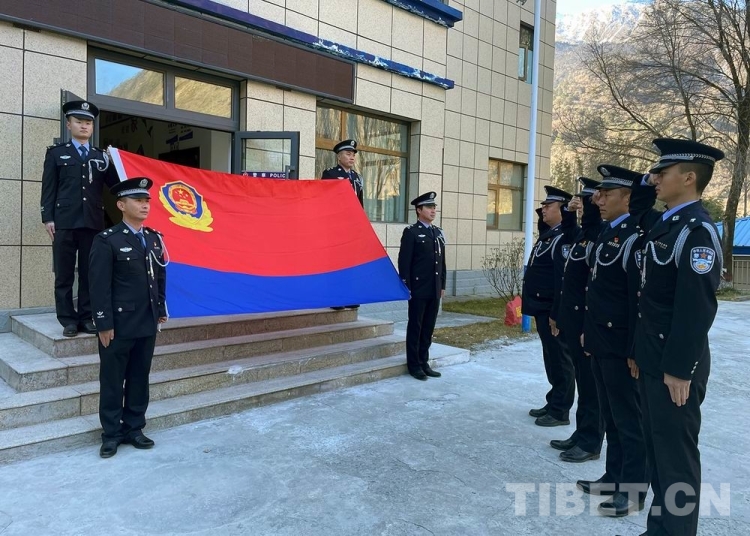 圖為隆子扎日邊境派出所全體民警重溫入警誓詞 陳誠 攝