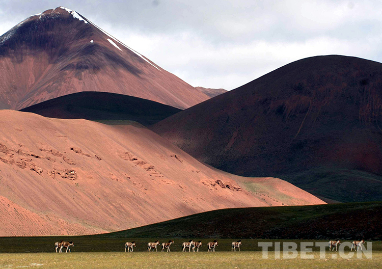 這是藏北高原的紅山脈與國家一級(jí)保護(hù)動(dòng)物藏野驢(唐召明2009年攝)