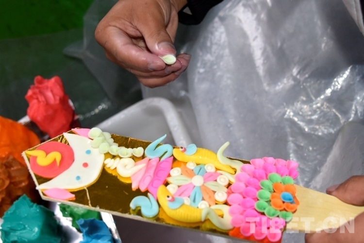 “我們一般在藏歷新年前20天左右到達(dá)拉薩。買酥油,和礦物染色原料調(diào)至成泥狀后便開始捏制。”旦增說,普松鄉(xiāng)有制作酥油花的傳統(tǒng),每年藏歷新年臨近,他們便結(jié)伴來到拉薩制作酥油花銷售。